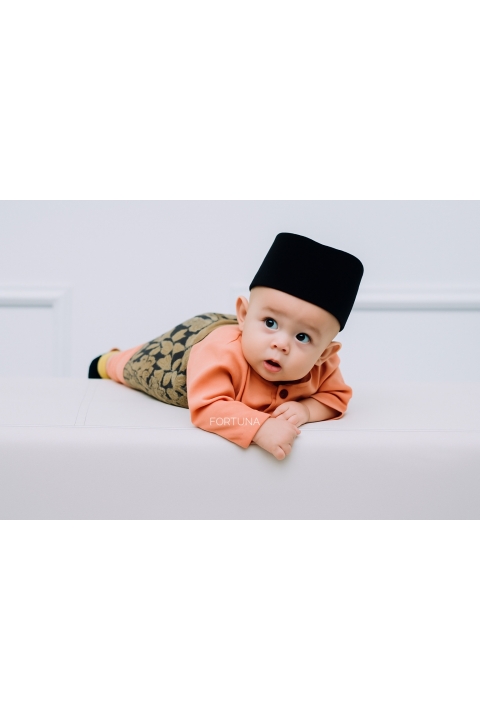 Baju Melayu Danish Peach + Sampin NE Black Silver