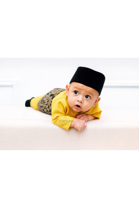 Baju Melayu Danish Mustard + Sampin DARK Black Gold