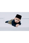 Baju Melayu Danish Navy Blue + Sampin RAYA Cream Gold