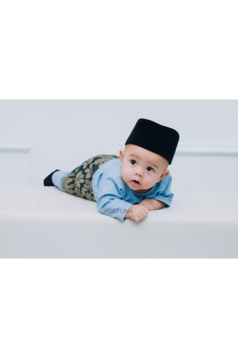 Baju Melayu Danish Soft Blue + Sampin RAYA Cream Gold